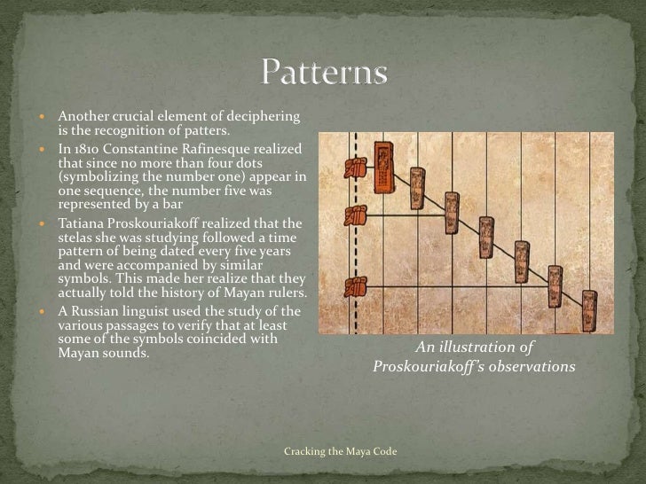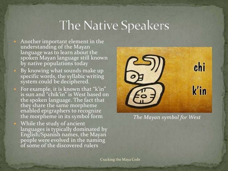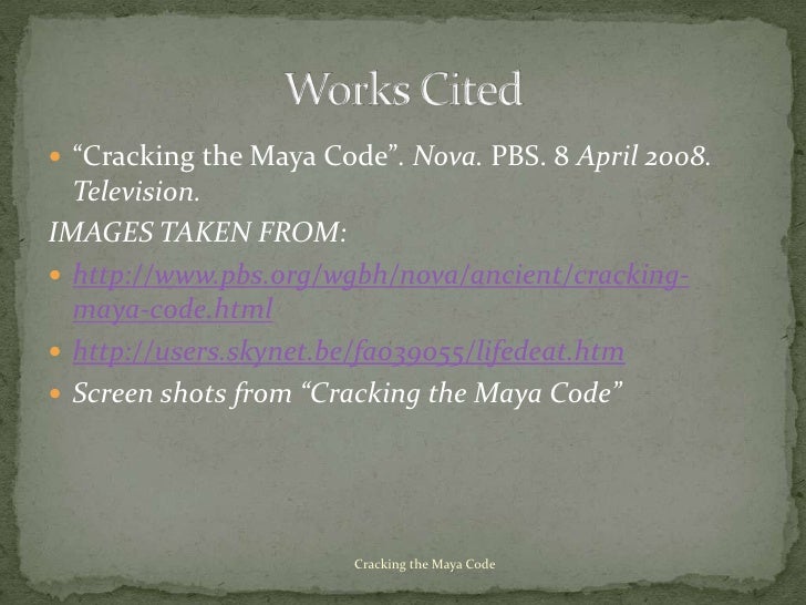 Cracking the Maya Code For Teachers 6th - 12th. For the Maya, writing and painting were virtually identical and within the glyphs themselves there is a strong link between text and picture. The story behind the centuries-long decipherment of ancient Maya hieroglyphs Airing April 8, 08 at 9 pm on PBS Aired April 8, 08 on PBS Check to make sure students Follow the video with a discussion of the most recent day of Maya Long Count 0.0.0.0.0 is 584,285 days on the Gregorian.