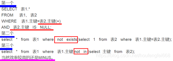 Oracle之minus求差集 与该功能相同的有not In Not Exists 侯风飞的博客 Csdn博客