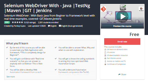 Selenium Webdriver Free Online Course With Certificate Udemy