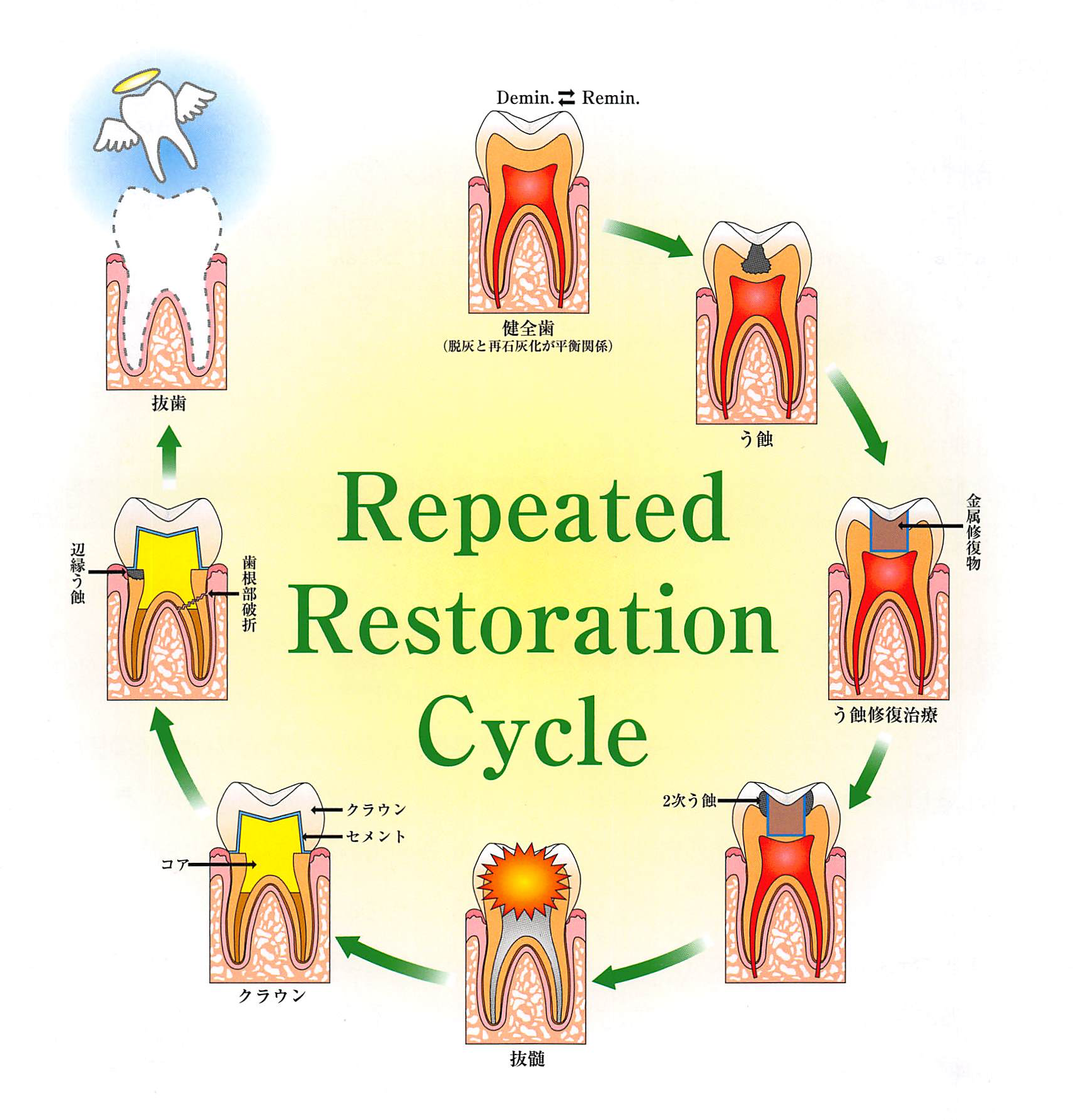 アペキソゲネーシスは、生活歯髄が残っている場合に適用されます。 その際、ラッパ状に開いている 根尖を生物学的に閉鎖 させます。. 「 予防歯科とはきちんと治療ができての前提 」と話されていたのが印象的でした。 つまりきちんとした治療を受けて患者さんが歯磨きを頑張り、 歯科医院で定期的にチェックを受けるというのが予防歯科です。 治療が丁寧かの先生の見分け方 「基準」は. これは、Atraumatic (非侵襲性)Indirect Pulp Capping(間接覆罩)を語源 としている。.