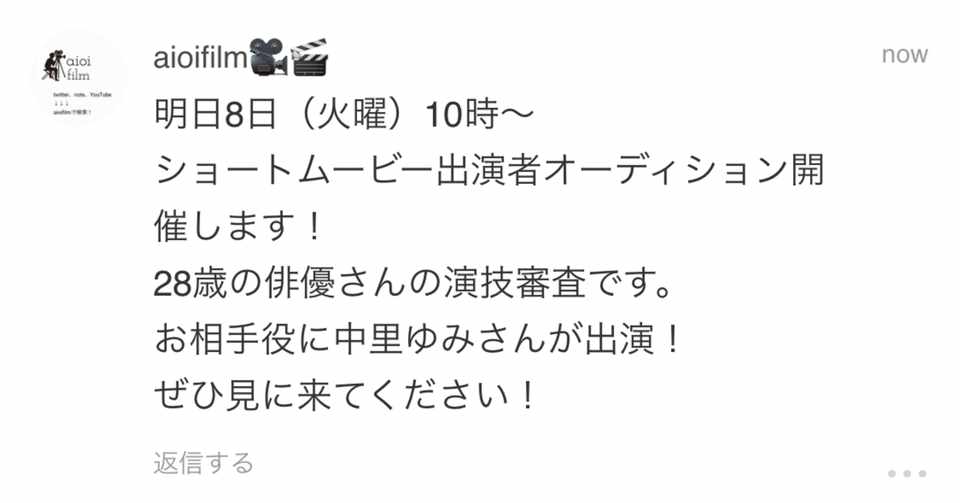 ショートムービー出演者 公開オーディション開催 Aioifilm Note