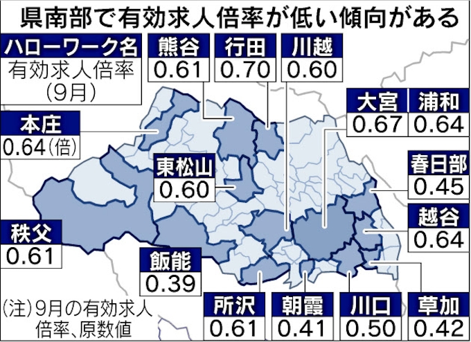 埼玉の有効求人倍率 なぜ低水準 9月0 56倍 日本経済新聞