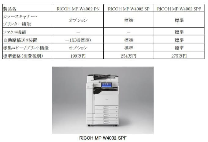 リコー サイズ対応複合機 Ricoh Mp W4002 シリーズ を発売 日本経済新聞
