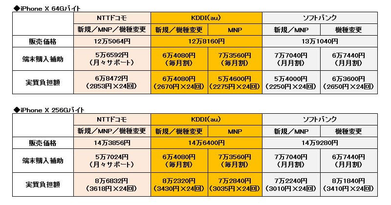 Iphone Xの価格 値段を徹底比較 ドコモ Au ソフトバンク Simフリー モバレコ 格安sim スマホ の総合通販サイト