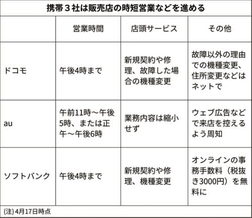 新型コロナ 携帯3社 全国で時短営業 店頭サービスにばらつきも 日本経済新聞