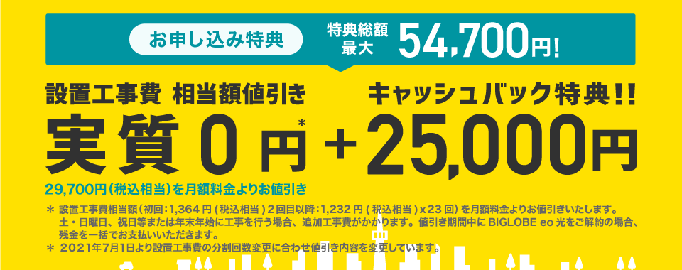 オトク Eo光がキャッシュバック 月額割引 工事費無料になるキャンペーン