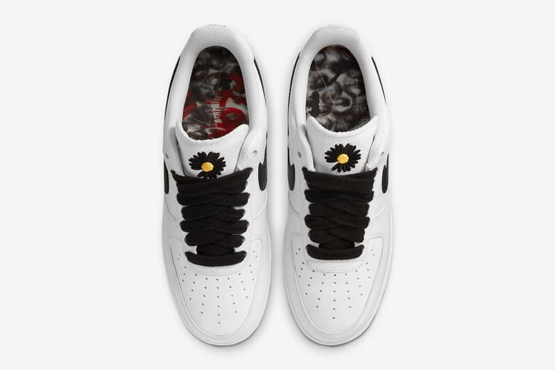 The sneaker also boasts black Nike branding, an embroidered daisy on the tongue, printed insoles, a black streak along the midsole, and thick black laces. Serving as the sequel to the BIGBANG. Nike has officially confirmed the release info surrounding G-Dragon's "Para-noise" Air Force 1 Low collab.