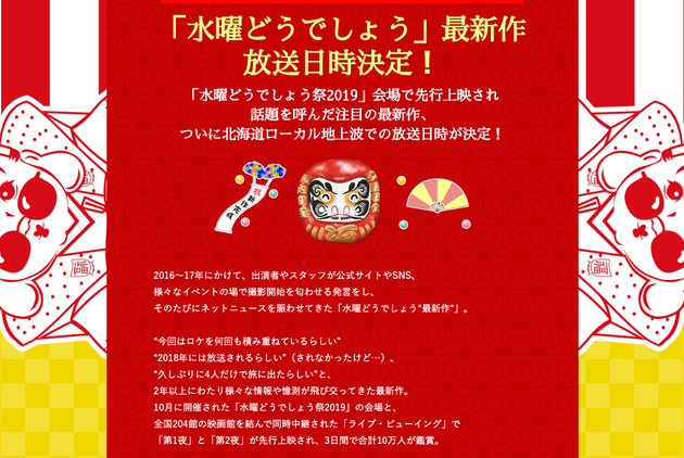 水曜どうでしょう祭 Festival In Sapporo 19 ライブ ビューイング限定 オリジナルグッズ販売決定 さらに 水曜どうでしょう 注目の新作を先行上映決定 ライブ ビューイング ジャパンのプレスリリース
