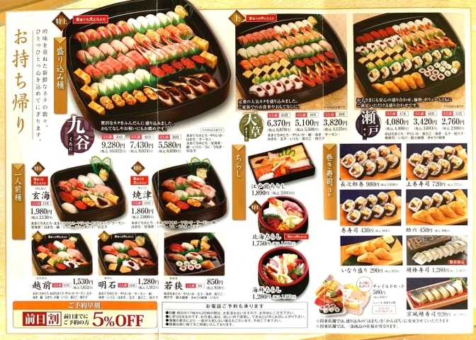 お得なお持ち帰り にぎり長次郎 あずきのつぶやき